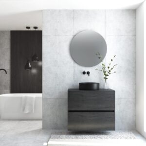 Pack MONTET + lavabo noir + miroir rond avec éclairage LED